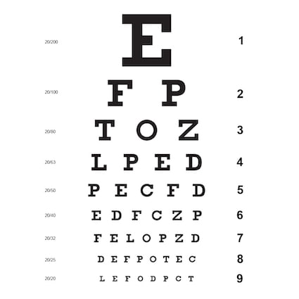 - 20/40 vision: Si vous pouvez lire clairement jusqu'à la sixième ligne, votre vision est de 20/40. Cela signifie que vous pouvez lire la même ligne de lettres à 6,09 mètres qu'une personne ayant une vision normale à 12,2 mètres. La ligne 20/40 est le seuil standard à partir duquel il est nécessaire de porter des verres correcteurs. Si cette ligne n'est pas lisible, une correction de la vue est généralement prescrite.